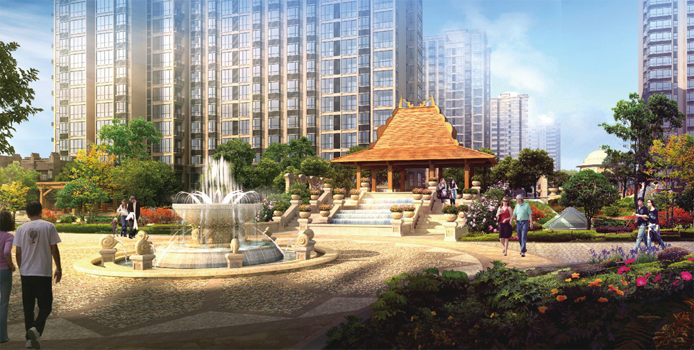 该项目以“健康人生、时尚生活、高雅人居”为主题,采用现代化简欧的设计特点,力求营造生态、环保、现代、时尚、高雅的生活环境。